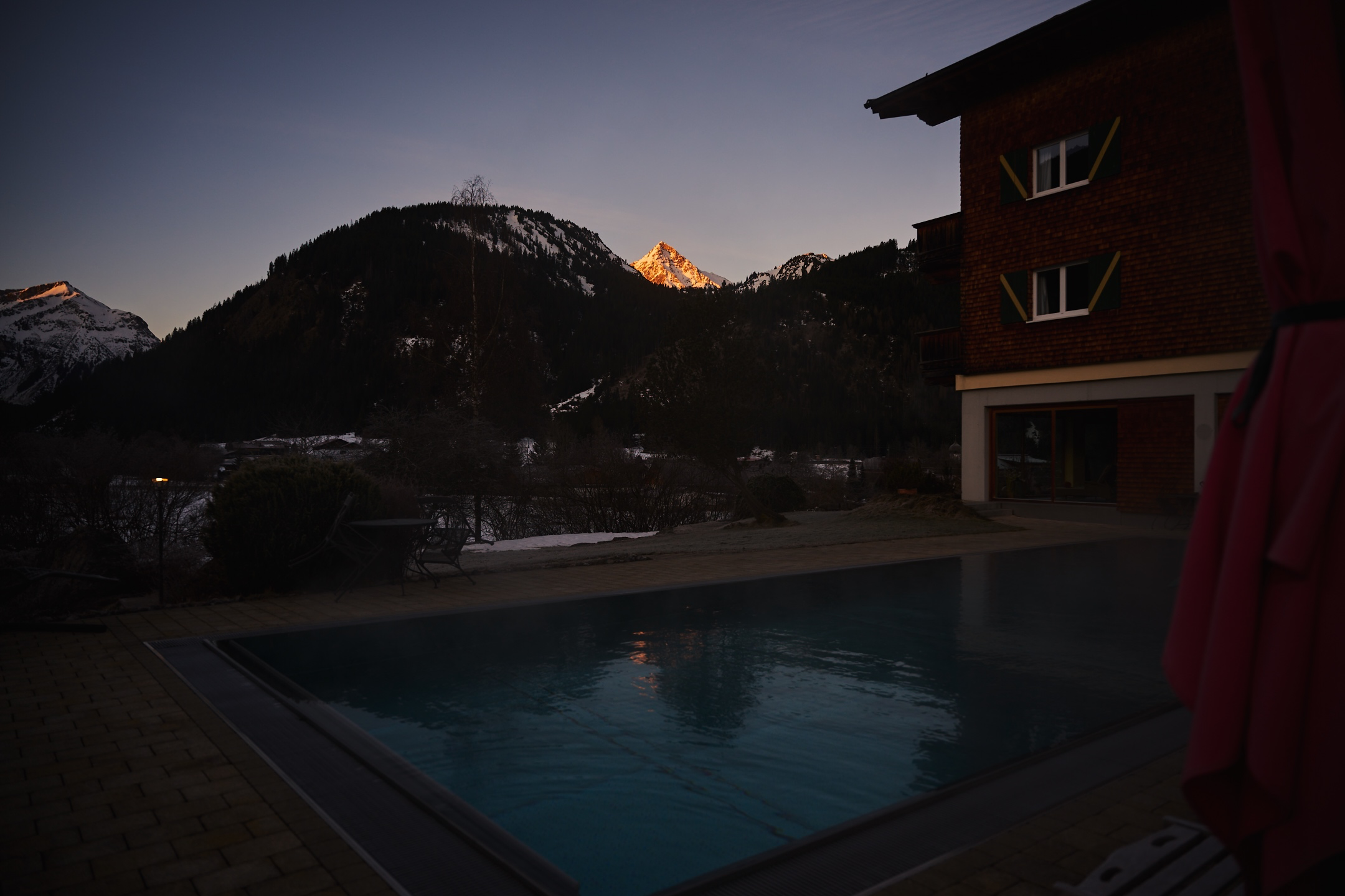 Ganzjährig beheizter Außenpool mit Blick auf die Berge